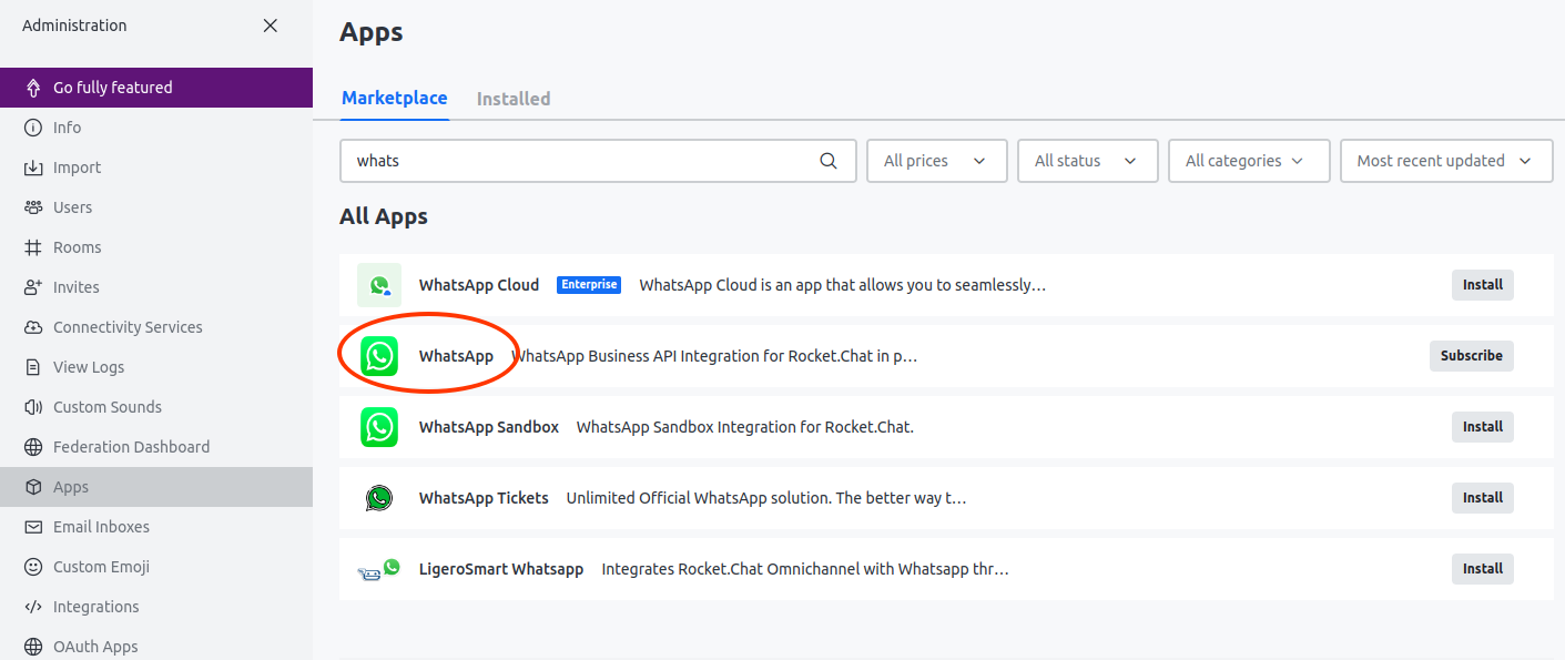 Rocketchat también tiene una aplicación que se integra con la API de WhatsApp. Este permite extender las capacidad del Bot a WhatsApp