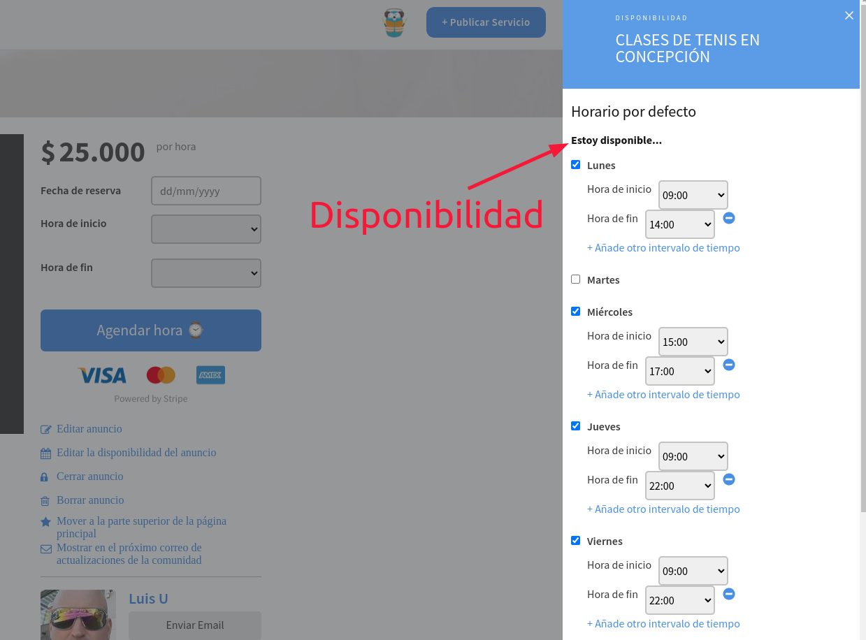 - Distintos tipo de servicios (Por hora, por día, por evento, por persona, etc)