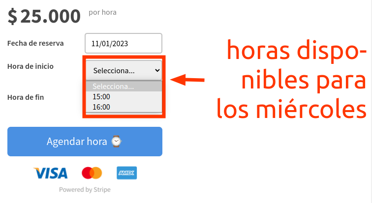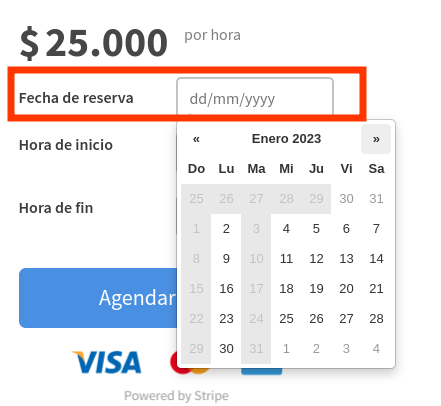 Otro de los requerimientos fue el de permitir el pago por hora. Pero no sólo eso, sino que incluyera un calendario de disponibilidad. Así, el "vendedor" primero debe declarar su disponibilidad: