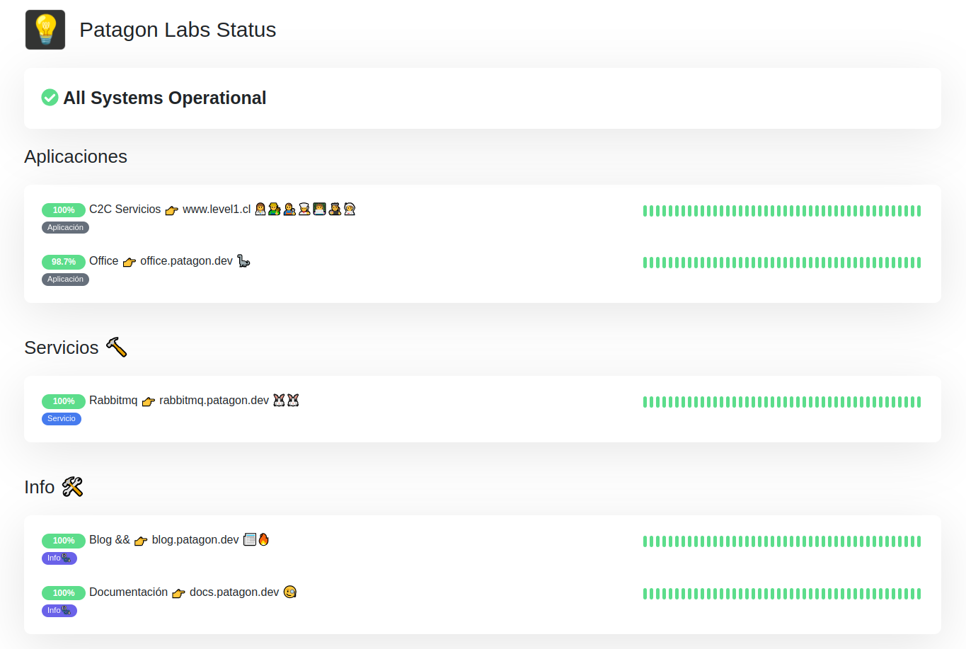 Aquí está nuestra página con el status de nuestras aplicaciones y servicios.